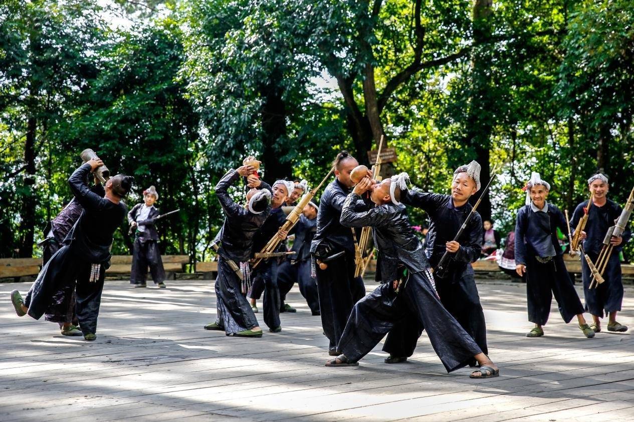 神秘苗寨,文化体验。岜沙苗寨的故事,藏在贵州黔东南月亮山麓的茫茫林海中,镰刀剃头高耸的“户棍”与响彻林涧的火枪声,用属于中国最后一个枪手部落的独特方式,表达对绿水青山的敬畏。你可以跟随非遗匠人编织精美丝竹制品,破译古老苗绣蜡染上的色彩密码,欣赏千年古树下翩翩起舞的苗族舞者和悠扬婉转的芦笙演奏,探秘苗族原生文化“活化石”和“博物馆”。