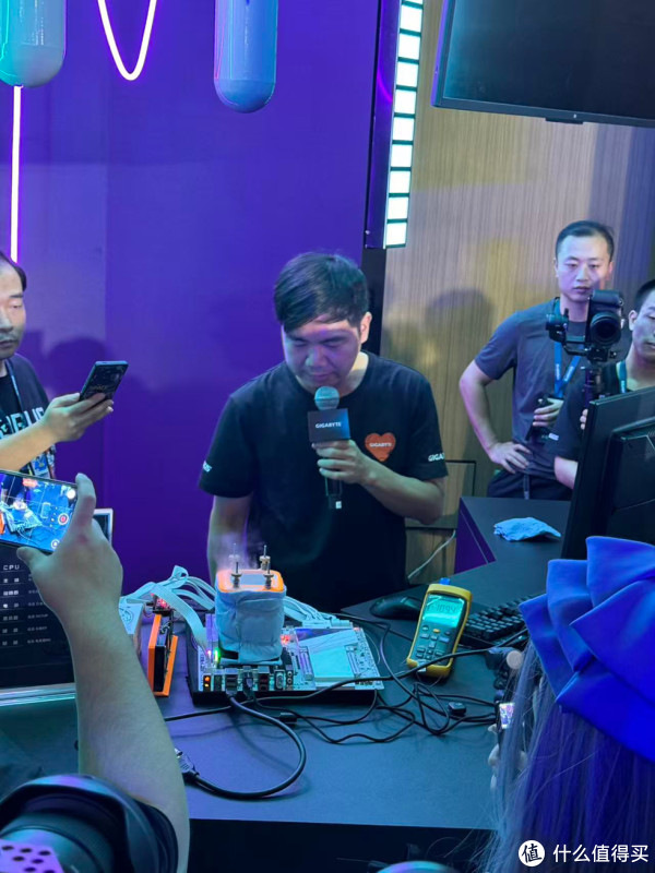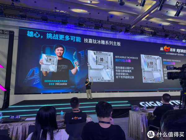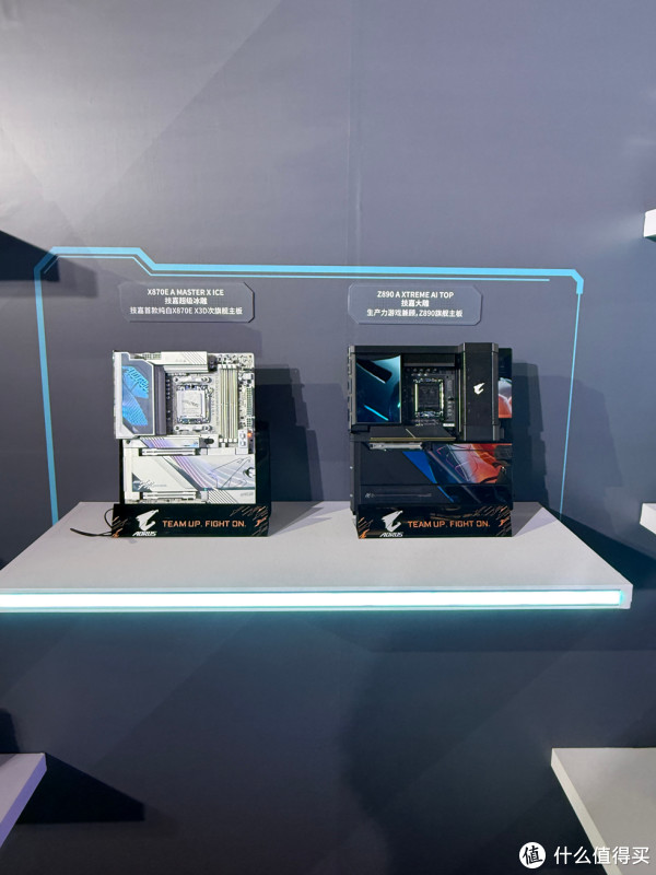 此次发布会展出了技嘉全线产品,其中最为引人注目的便是X870E AORUS MASTER X3D ICE 超级冰雕与Z890 AORUS XTREME AI TOP超级雕。