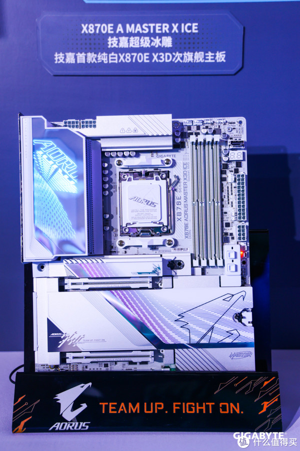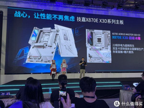 本次发布会隆重登场主角 —— X870E AORUS MASTER X3D ICE 超级冰雕主板: