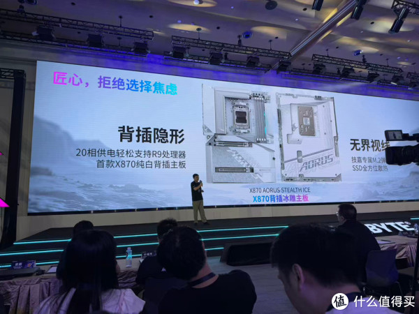 同时还有X870 AORUS STEALTH ICE 背插冰雕主板,颜值真的非常高。