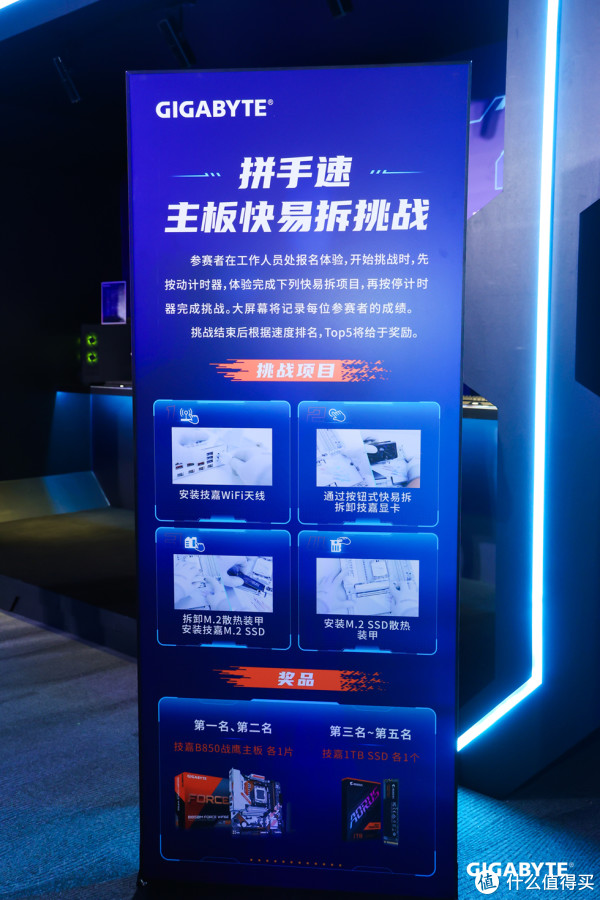 在现场还有活动可以参与,其中主板快意拆拼手速活动,一不小心拿到了冠军第一名哈哈,非常荣幸获得技嘉B850M战鹰主板一张。